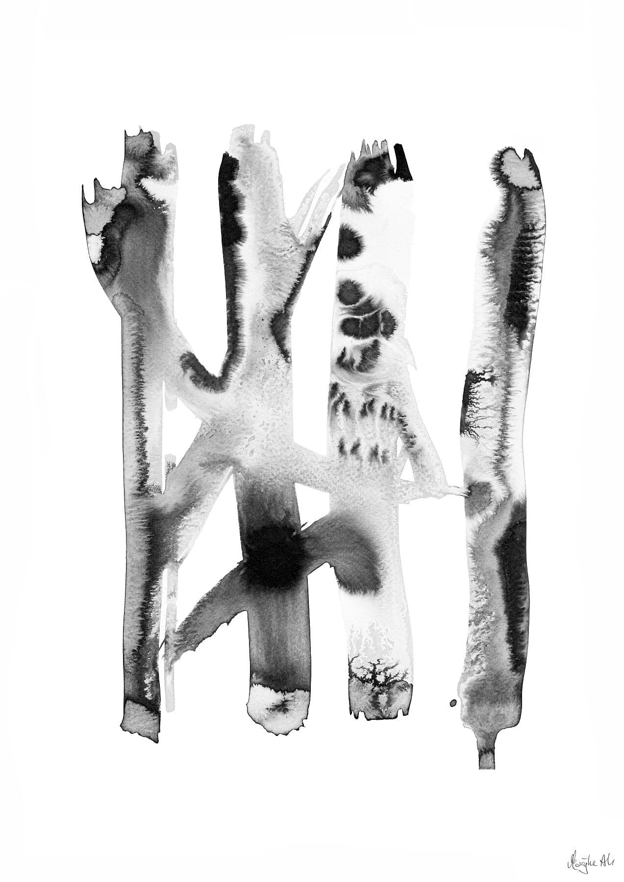 Giclée print of an abstract painting with chinese black ink, Ilford cotton textured paper, sizes A5, A4, A3, A2, A1, painting by Marijke Ali, t-finsUntitled 15