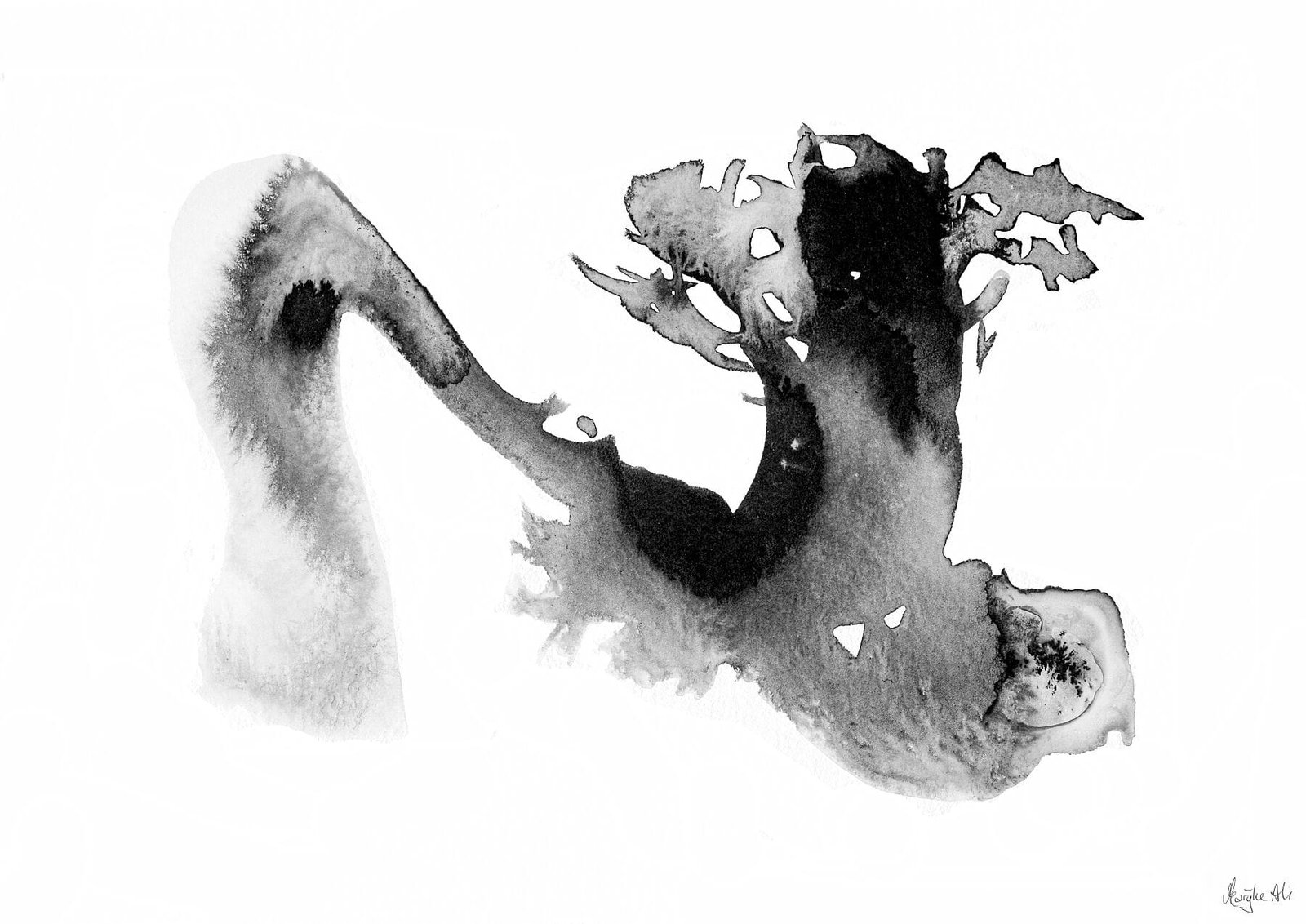Giclée print of an abstract painting with chinese black ink, Ilford cotton textured paper, sizes A5, A4, A3, A2, A1, painting by Marijke Ali, t-finsUntitled 40