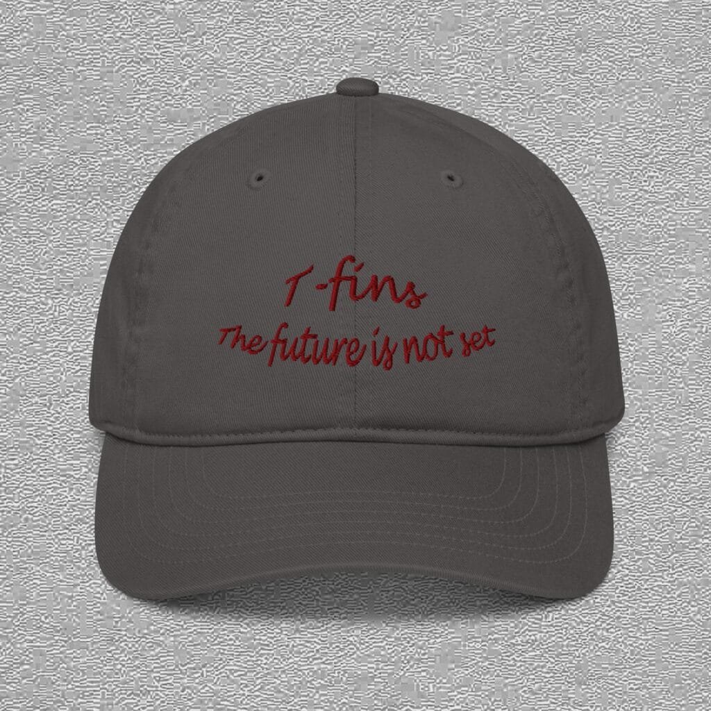Baseball Cap Collection100% organic cotton, 3/1 twillSelf-fabric adjustable closure with a brass slider and hidden tuck-inFor information on the Ecolabels read HereEmbroidered with T-fins, the future is not set Details & CartDetails & CartDetails & CartDetails & CartDetails & Cart